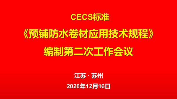 ? ? 2020年12月16日上午,中國工程建設標準化協會標準《預鋪防水卷材應用技術規程》編制第二次工作會議在蘇州金陵雅都大酒店召開。蘇州中材非金屬礦工業設計研究院防水材料設計研究所副所長王玉峰高工主持會議。
